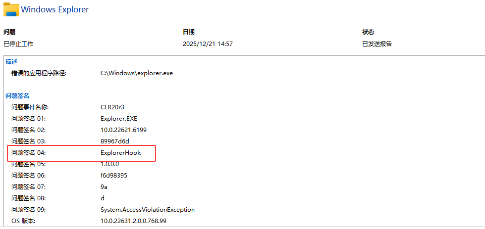 System.AccessViolationException: 这是一个严重的 .NET 异常,表示程序试图访问不属于它的内存区域。这通常是由于代码缺陷、与新版系统不兼容或与其他软件冲突导致的。