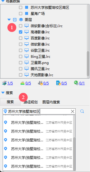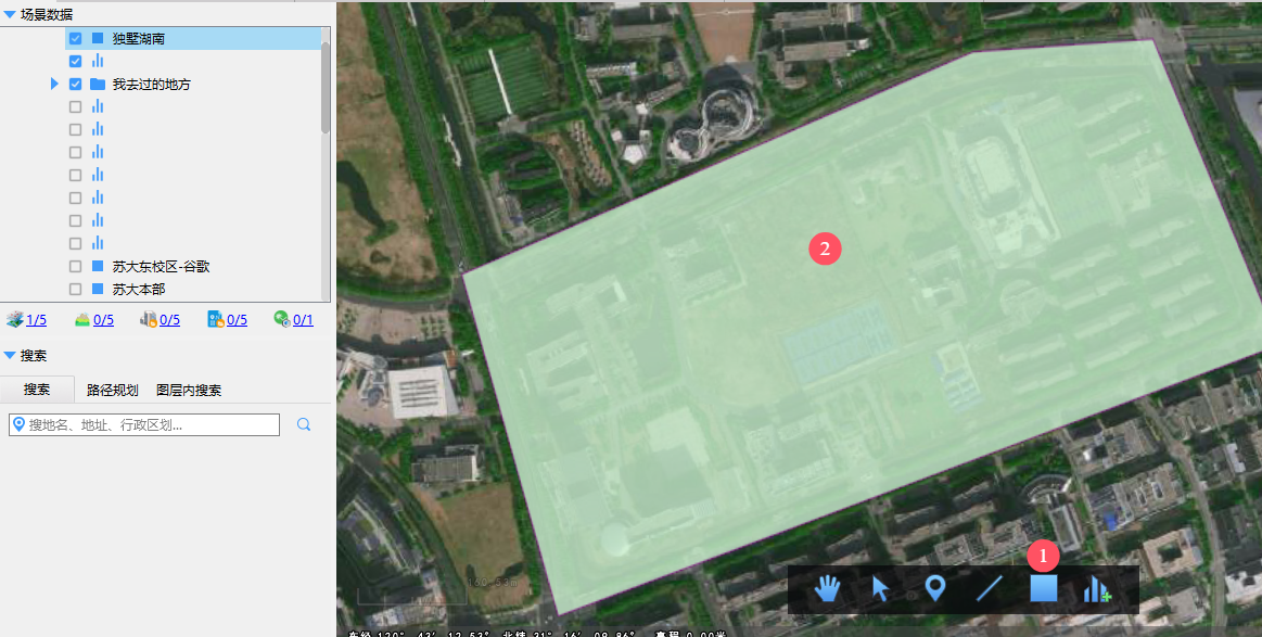 4.使用搜索功能,找到目标地点,以苏州大学独墅湖校区南区为例