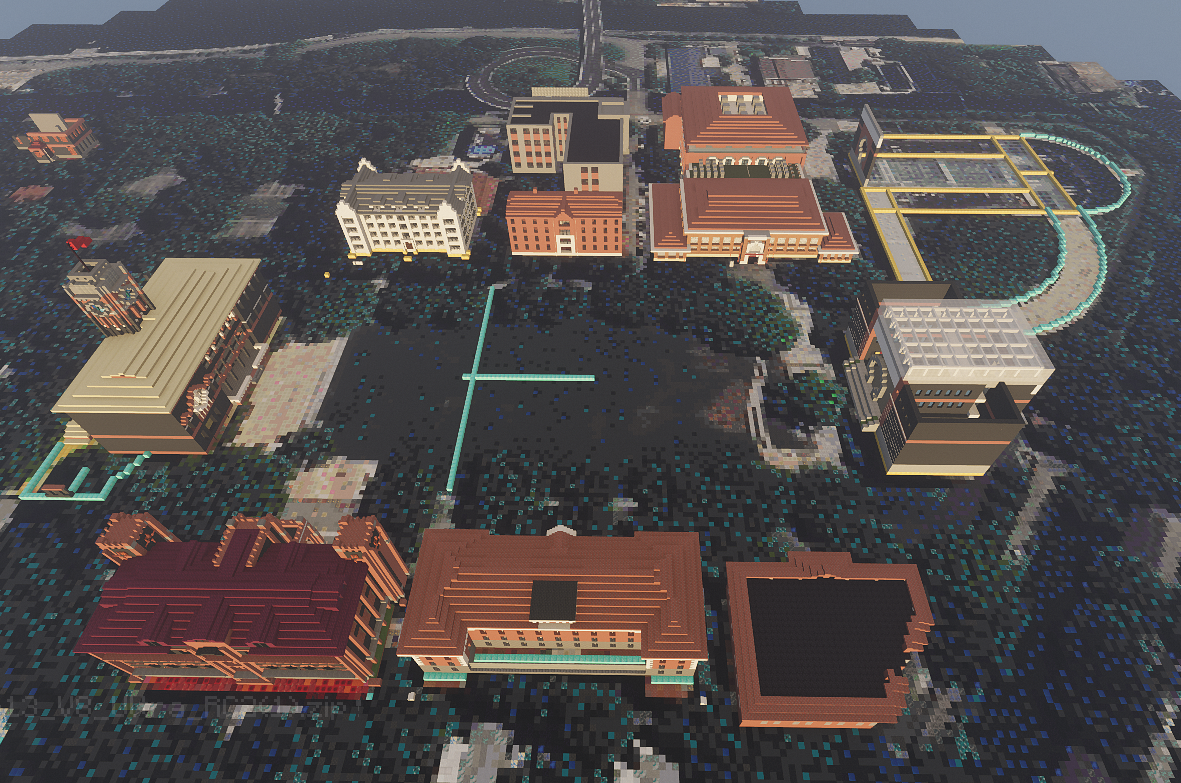 2.每个面逐步复原,最后封顶,层高一般为4-5格,将校区内所有建筑复原